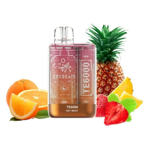 - Ресурс до 6000 затяжок. Однією електронною сигаретою вистачає надовго. Elf Bar TE6000 Key West (Ананас Апельсин Полуниця) Одноразовий POD забезпечує стабільну подачу пари до 6000 затяжок — цього більш ніж достатньо на кілька днів активного використання, а часом і на тиждень.