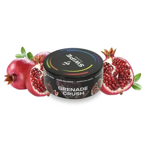 Найпопулярнішим серед поціновувачів димного відпочинку є Кальянна суміш Swipe Grenade crush (Гренаді краш, 100 г) від Swipe. Основа кальянної заправки — це тютюновий лист Органічна фруктова клітковина високої якості, а також натуральні ароматизатори, патока та чистий гліцерин. Завдяки цьому тютюн має насичений смак Гранат, приємний аромат і здатний утворювати густий дим.