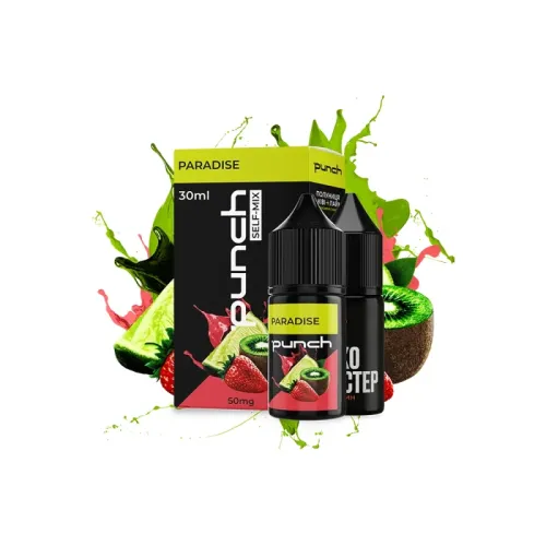 Набір для самозамішування Punch Paradise (Ківі Полуниця Лайм, 50 мг, 30 мл) надає вейперам унікальні смакові відчуття. Ця жижа ідеально підходить для багаторазових вейпів завдяки своїй оптимальній густоті, безпечному складу та приємному аромату, відкриваючи нові грані смаку.