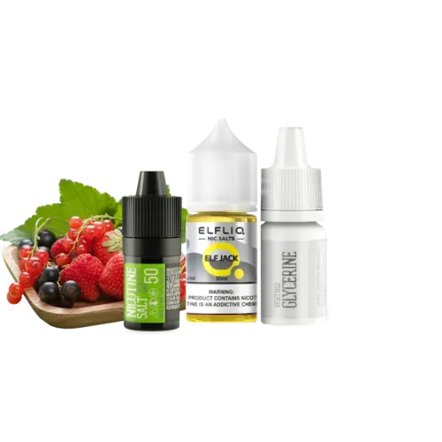 Набір для самозамішування Elfliq Elf Jack (Ягідний Мікс, 50 мг, 30 мл) надає вейперам унікальні смакові відчуття. Ця жижа ідеально підходить для багаторазових вейпів завдяки своїй оптимальній густоті, безпечному складу та приємному аромату, відкриваючи нові грані смаку.