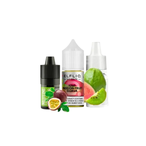 Набір для самозамішування Elfliq Kiwi Passion Fruit Guava (Ківі Маракуя Гуава, 50 мг, 30 мл) надає вейперам унікальні смакові відчуття. Ця жижа ідеально підходить для багаторазових вейпів завдяки своїй оптимальній густоті, безпечному складу та приємному аромату, відкриваючи нові грані смаку.