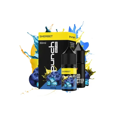 Набір для самозамішування Punch Sherbet (Лимон Чорниця Холод, 50 мг, 30 мл) надає вейперам унікальні смакові відчуття. Ця жижа ідеально підходить для багаторазових вейпів завдяки своїй оптимальній густоті, безпечному складу та приємному аромату, відкриваючи нові грані смаку.