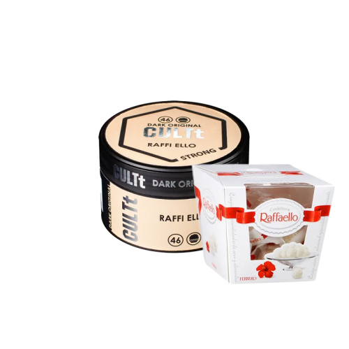Найпопулярнішим серед поціновувачів димного відпочинку є Тютюн CULTt Strong DS46 Raff iello (Раффі елло, 100 г) від CULTt. Основа кальянної заправки — це тютюновий лист Virginia, Burley високої якості, а також натуральні ароматизатори, патока та чистий гліцерин. Завдяки цьому тютюн має насичений смак Кокос, Сливки/Крем, приємний аромат і здатний утворювати густий дим.